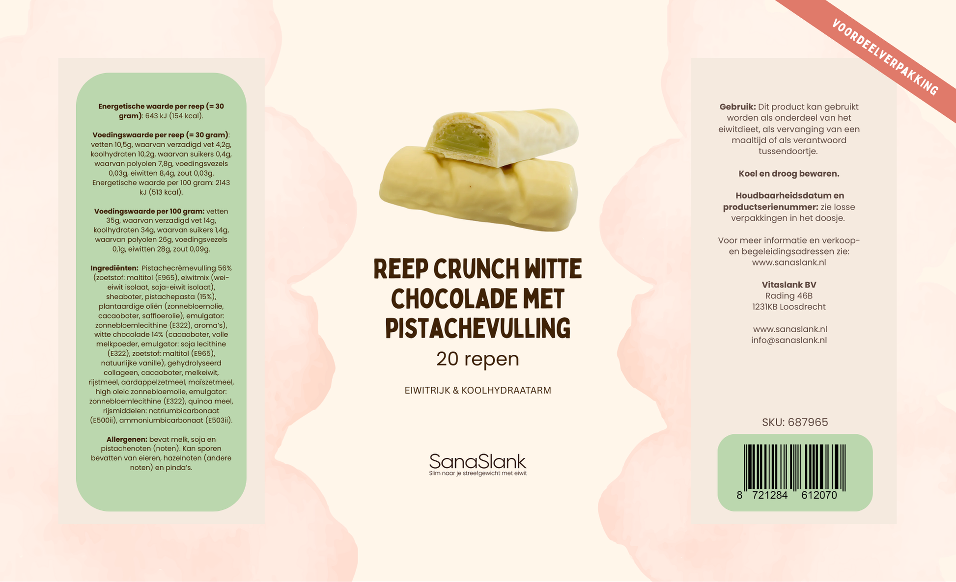 XXL Pakket – Reep Crunch Witte Chocolade Pistache (20 stuks) | Sanaslank